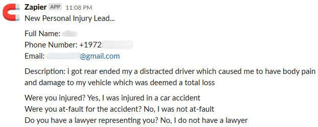 Qualified Leads - Each lead is qualified based on your law firm's requirements (Ex. not at-fault, sustained injuries, less than 2 years, etc).